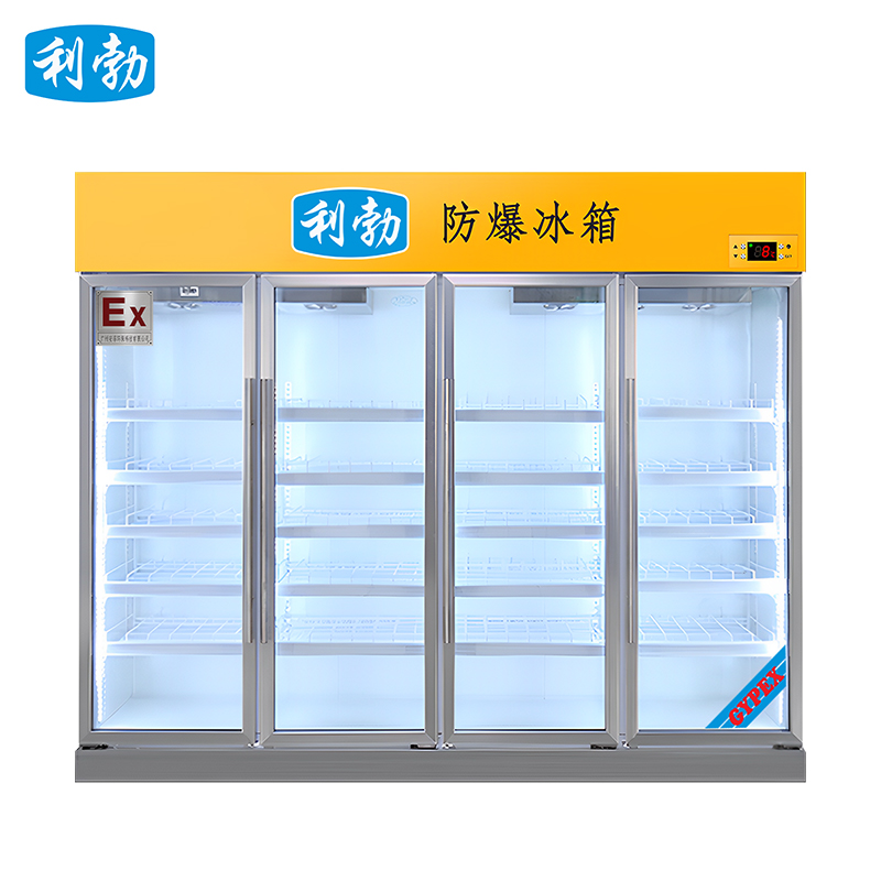 【利勃防爆冰箱】产品特点:防爆冷柜主要应用在石油、化工、科研、实验室等领域,用于在较低温度下冷却储存药品试剂等常温下不易保存易挥发易燃易爆危险物品。按其结构分有单门、双门和多门及卧式、立式之分。它由制冷压缩机、冷凝器、冷凝器风机、蒸发器、温度控制器组成。为使其能在危险场所安全使用,我们同样采用复合防爆技术对冷柜进行防爆处理。压缩机、冷凝风机采用浇封或隔爆技术处理,温控器作为一个无源开关与防爆有源光耦固态继电器组成本质安全型温度自动控制系统。为保护压缩机不致损坏,采用延时型防爆固态继电器和过载保护及热保护器件,部分控制电器采用隔爆处理。为了防止静电所带来的危害,对冷柜内腔喷涂导电漆消除静电效应,使用更安全,更可靠;设置封闭内胆,安全系数高;采用强制风冷,用于循环冷却的轮流风机,有专用的熔断器保护,冰箱设计了内部接地保护。