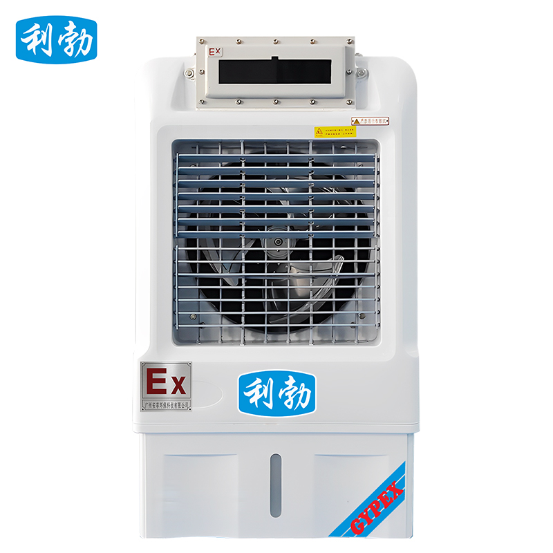 降温原理:吸水泵将底座上的冷水一直抽打湿帘,利用水蒸发吸热的物理特性来冷却空气,利用水帘纸增大和空气的接触面积,空气进入到机内和水帘进行对流换热并得到冷却,然后,通过风机送入室内。